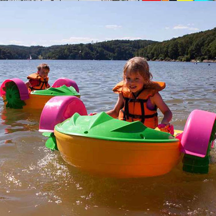 Children can easily operate the boat with hand paddles, which provide smooth movement and full control. As a popular kids hand paddle boat, it encourages exercise, balance, and coordination while delivering great entertainment. Parents and water park operators love this boat because it is a safe and eco-friendly aqua toy paddle boat made of strong plastic material.